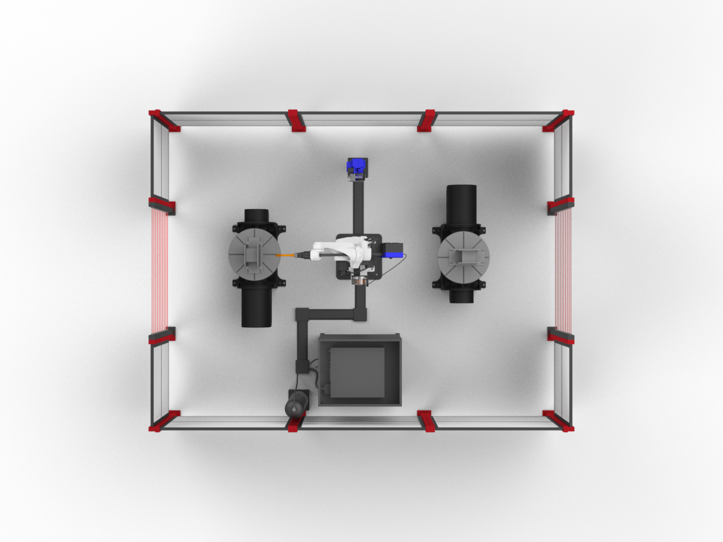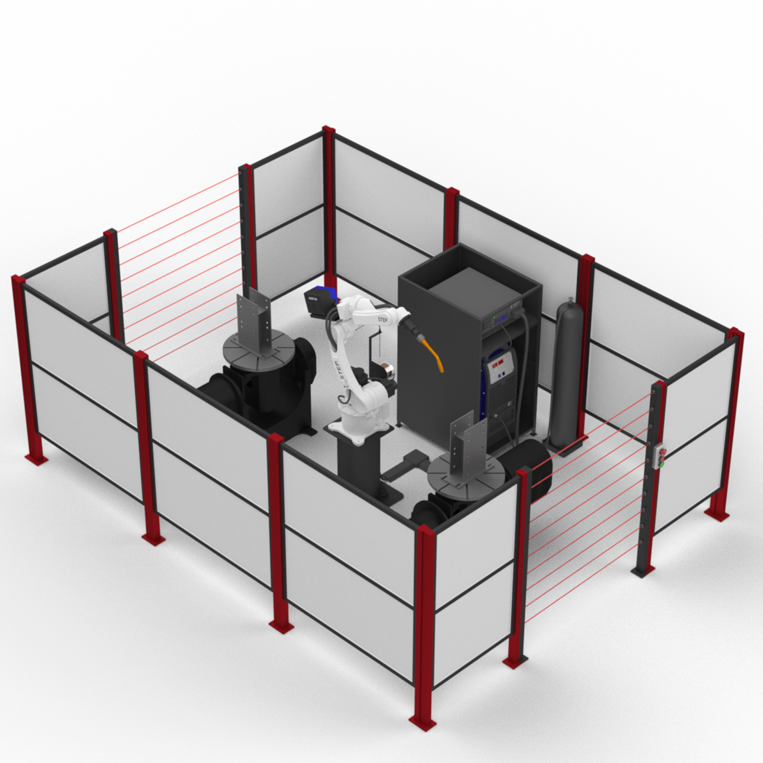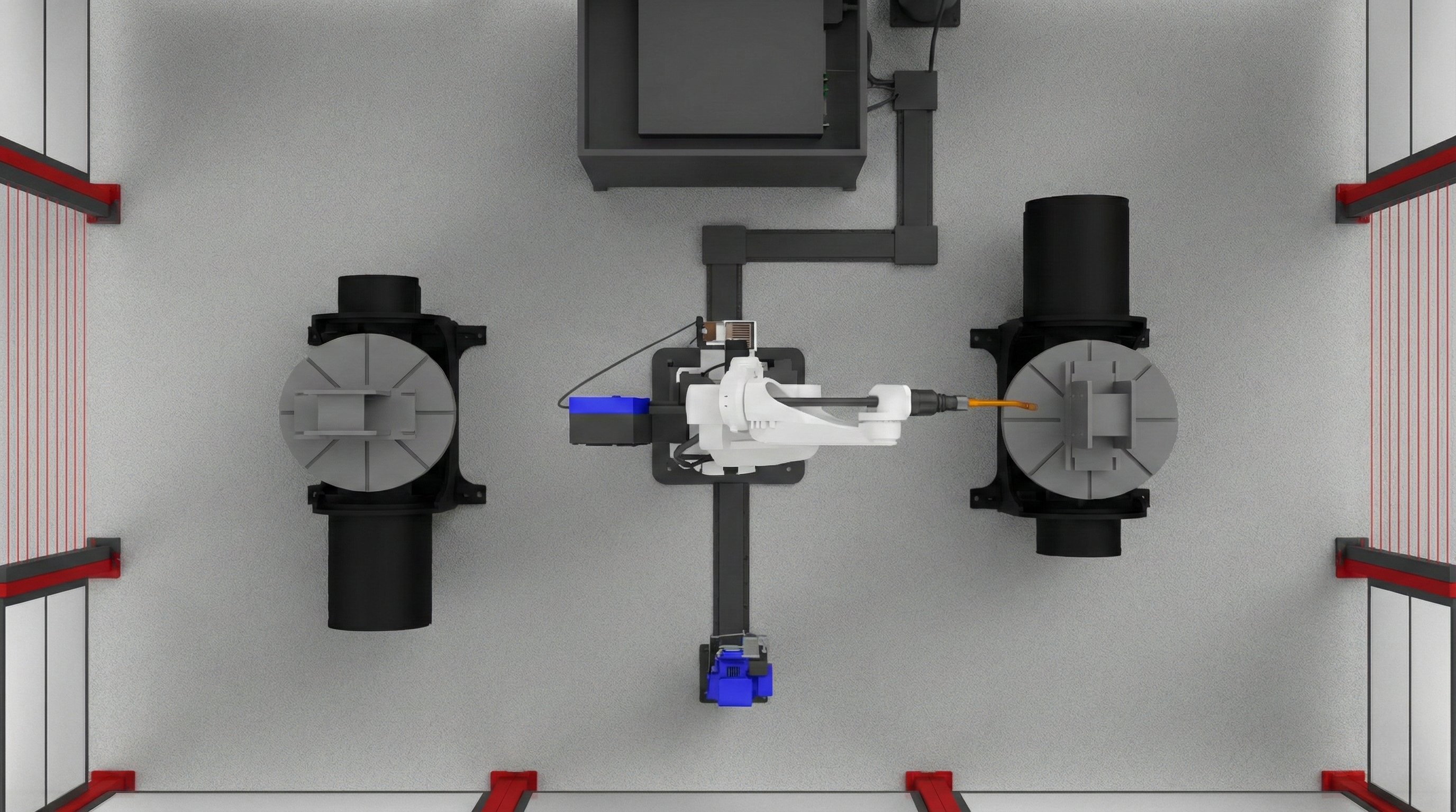 РТК: робот + два двухосевых позиционера. Пока оператор устанавливает следующую заготовку, робот варит на соседней позиции без простоев.
